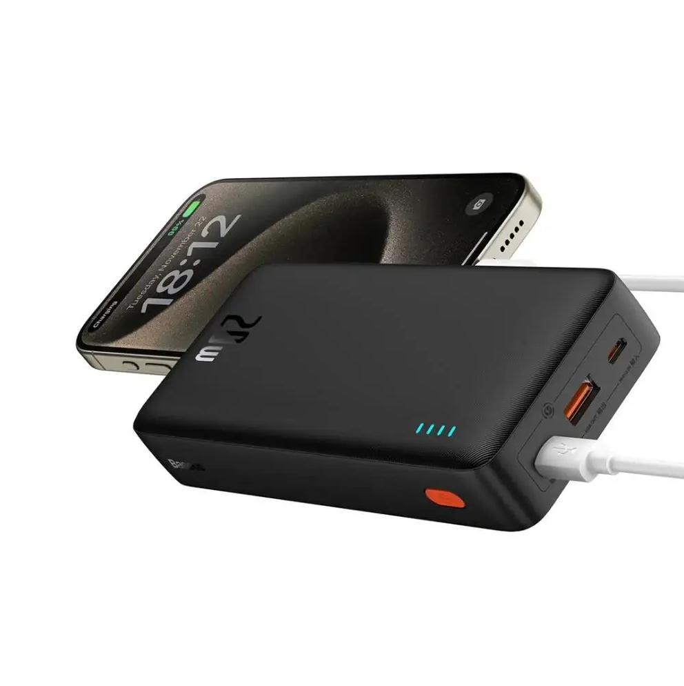 باور بانك بيسوس 20000 20 واط هو شاحن محمول مصمم لتوفير طاقة كافية لشحن أجهزة متعددة أثناء التنقل. بسعة 20000 ملي أمبير، يمكنه شحن هاتف iPhone 14 حوالي 4 مرات أو iPad Pro مرة واحدة، مما يجعله مثاليًا للسفر أو الاستخدام اليومي المكثف. يدعم الشحن السريع بقوة 20 واط عبر منفذ USB-C، مما يتيح شحن iPhone 13 إلى 60% في حوالي 30 دقيقة. يحتوي على ثلاثة منافذ (USB-C واثنين USB-A)، مع إمكانية شحن جهازين في وقت واحد بإجمالي 15 واط. بعض الطرازات، مثل Qpow Pro، تتضمن كابل شحن مدمج (Lightning أو USB-C) يعمل كحزام لسهولة الحمل.