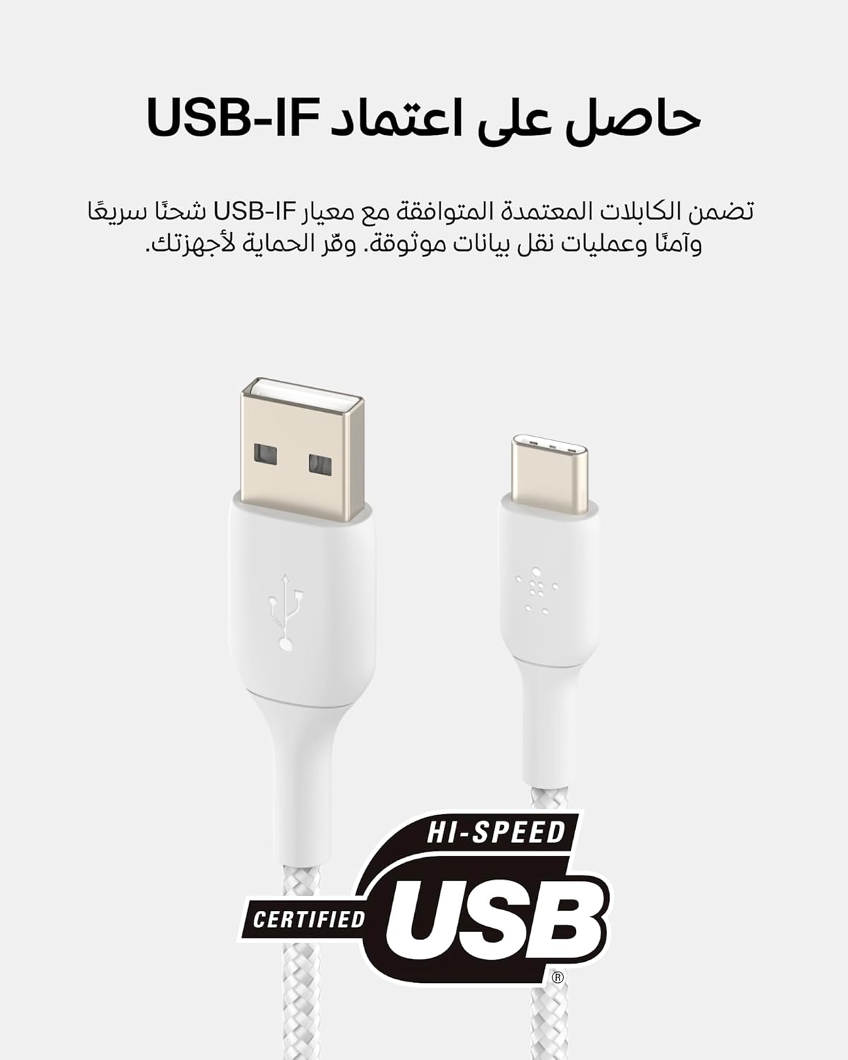 بلكن كابل يو اس بي ايه مضفر ممتاز بطول 3 متر، ابيض، CAB002bt3MWH، 3 متر