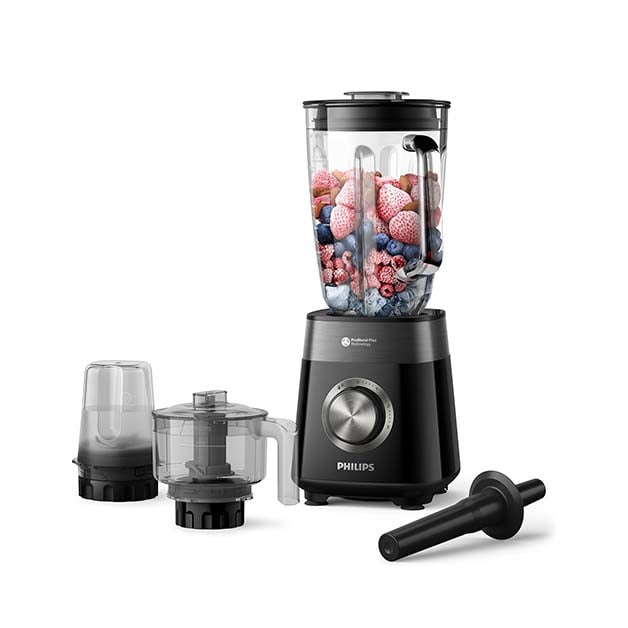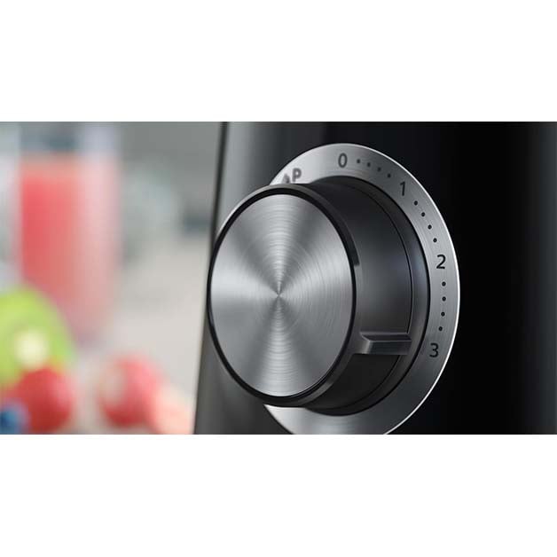يوفر الخلاط 3 سرعات بالإضافة إلى زر نبضي للتحكم الكامل في عملية الخلط، ويأتي مع ملحق مفرمة لتقطيع البصل والأعشاب والمكسرات، وملحق مطحنة للقهوة والتوابل الطازجة. الشفرات قابلة للفصل لتسهيل التنظيف باليد أو في غسالة الصحون، مع وظيفة تنظيف سريع لتوفير الوقت.