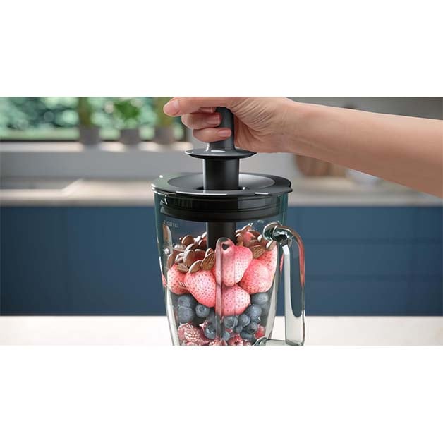 يقدّم خلاط فيليبس سلسلة 5000 قوة 1200 واط مع تقنية ProBlend Plus لخلط أصعب المكونات بسهولة، بما في ذلك الفواكه المجمدة والمكسرات والثلج، للحصول على قوام ناعم وحريري. يتميز بجرة زجاجية مضلعة بسعة 2 لتر وسعة تشغيلية 1.5 لتر، مثالية لتحضير دفعات كبيرة من العصائر أو السموذي لجميع أفراد العائلة.