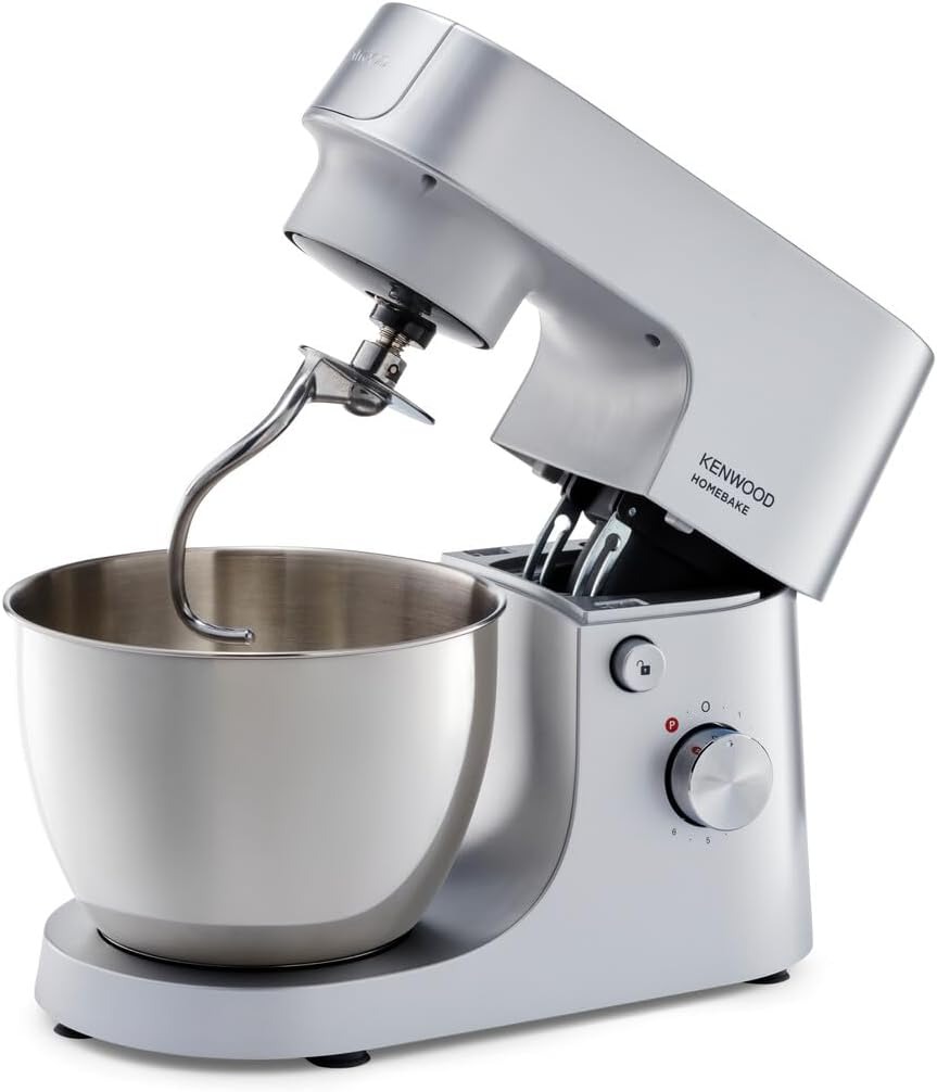 كينوود عجان هوم بيك فضي 1400 واط سعد 5 ليتر 6 سرعات و بلس تصميم عصري وعملي مع ثلاث ملحقات للعجن مع خلاط زجاجي