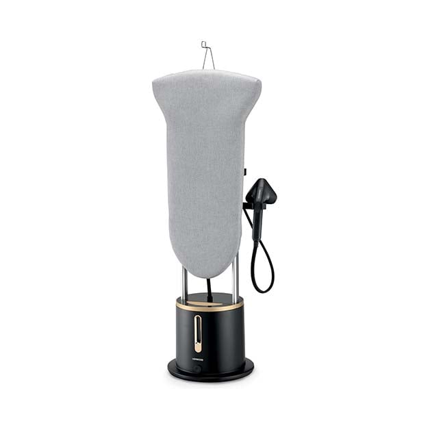 مزودة بخزان مياه كبير سعة 2 لتر قابل للإزالة لجلسات كي طويلة دون انقطاع، وتصميم أنيق باللون الأسود غير اللامع مع لمسات ذهبية، إضافة إلى شماعات مزدوجة، فرشتين، وقفازين لراحة واستخدام متكامل.