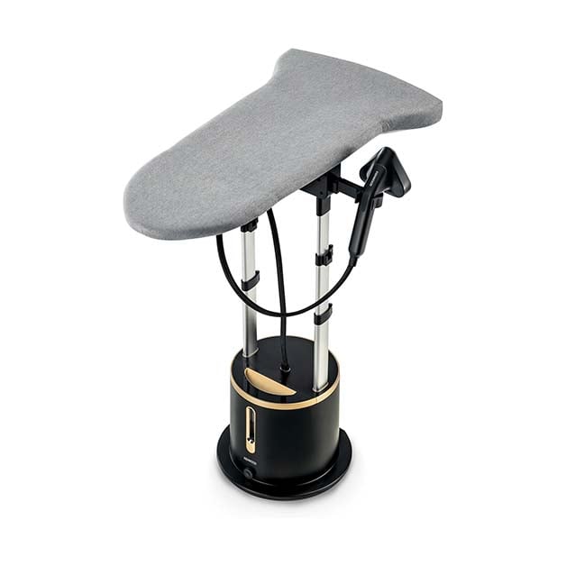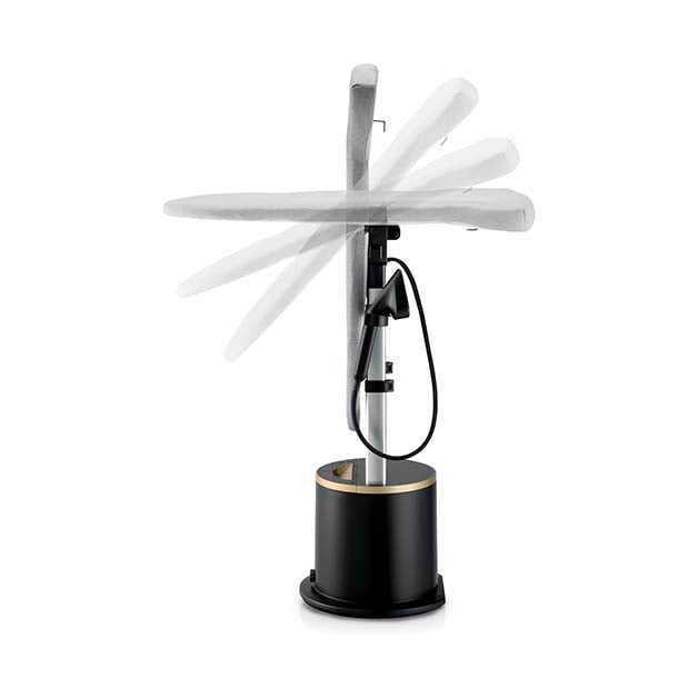 تأتي بطاولة كي بثلاث وضعيات (عمودية، مائلة 45°، وأفقية) لمرونة أكبر في الكي، وتحكم رقمي ذكي في اليد والقاعدة مع 3 مستويات للبخار.