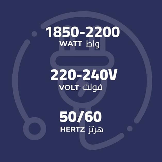 متوافق مع الجهد الكهربائي 220–240 فولت، 50/60 هرتز للاستخدام المنزلي الآمن.