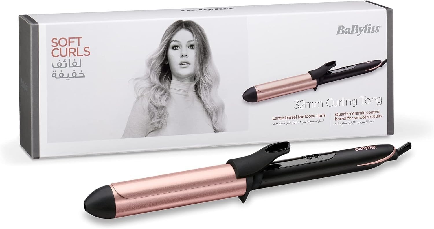 بيبيليس مكواة تجعيد الشعر 210 درجة 6 إعدادات للحرارة أسطوانة 32 مم لمسة نهائية مطلية بسيراميك كوارتز تسخين فائق السرعة إيقاف تلقائي قفاز حراري بساط حراري C452SDE – أسود