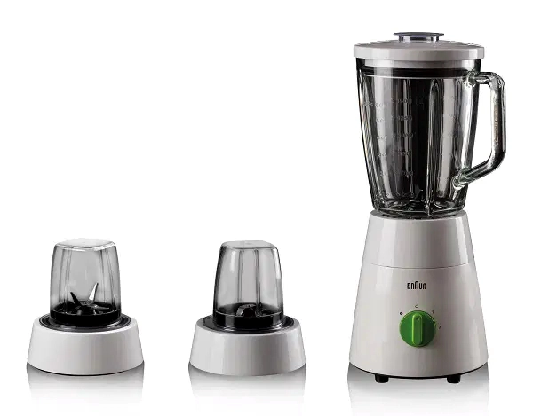 براون خلاط 3 في 1، 500 واط، 1.75 لتر إبريق زجاجي سرعتان وظيفة النبض مطحنة أبيض