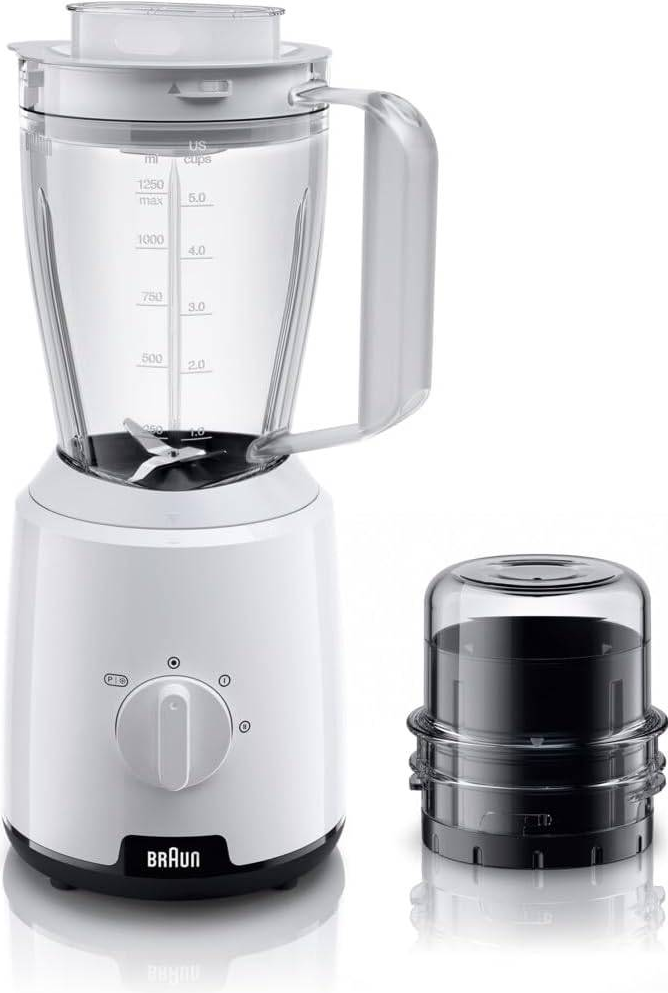 براون خلاط، 600 واط سرعتان وظيفة النبض سعة خلط 1.5 لتر مفرمة 0.150 كسارة ثلج سكين فولاذي آمن للاستخدام في غسالة الأطباق