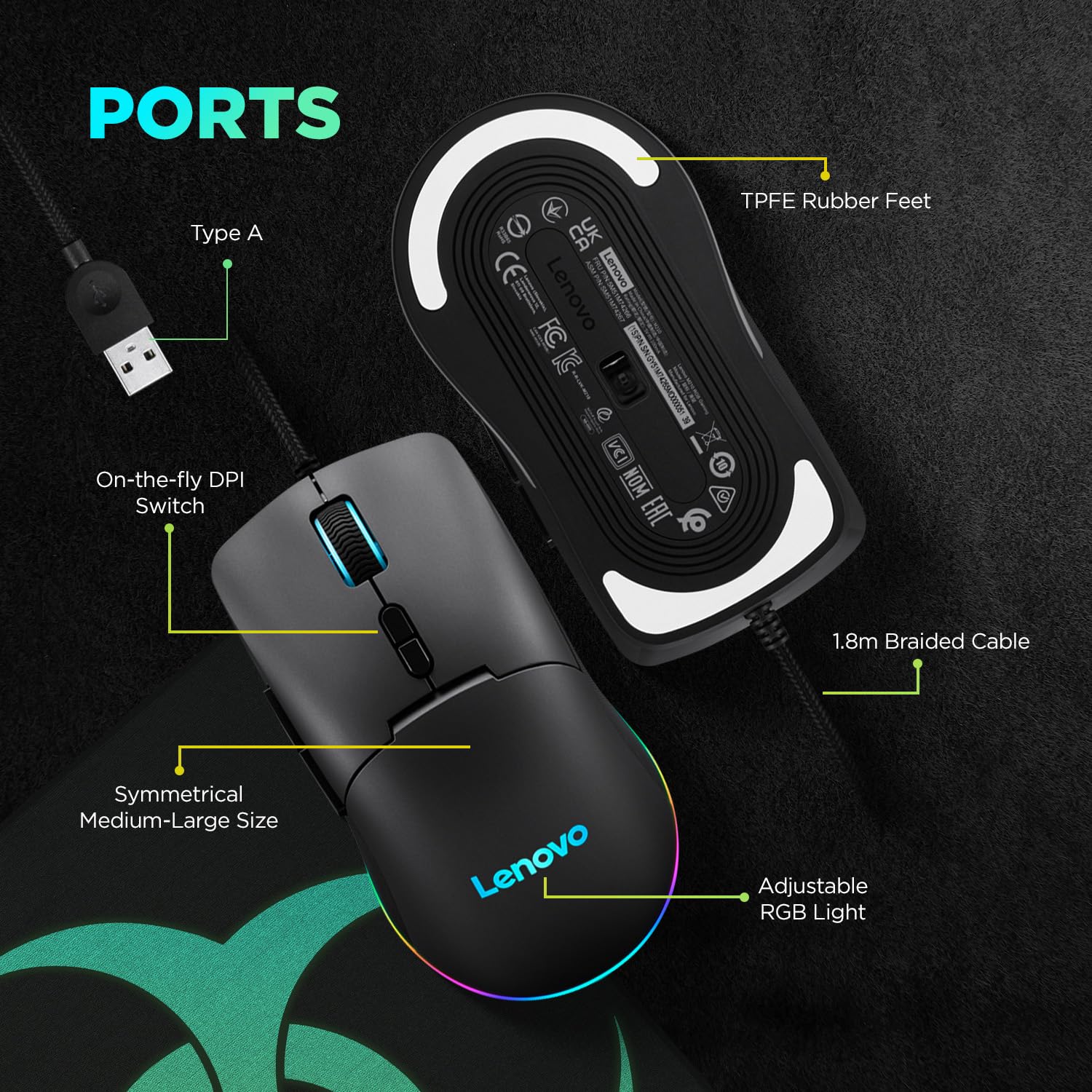ماوس Lenovo M210 RGB يجمع بين الأداء العالي، الدقة، والتحمل الممتد، مما يجعله مثالياً لجلسات اللعب الماراثونية أو الاستخدام المكثف.