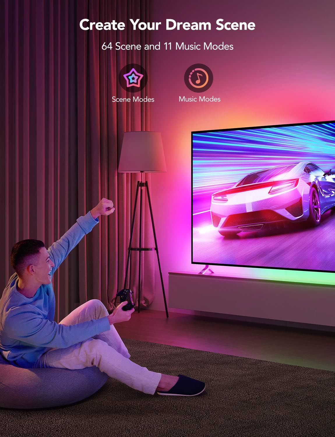 تعمل هذه الإضاءة على إضافة أجواء مميزة حول التلفاز من خلال ألوان RGBIC زاهية وقابلة للتخصيص، مع إمكانية التحكم في الألوان والسطوع والتأثيرات في نفس الوقت.