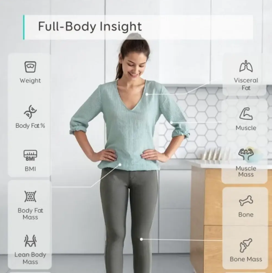 - وظائف القياس: الوزن ، دهون الجسم ، مؤشر كتلة الجسم ، الماء ، معدل الأيض الأساسي ، الدهون الحشوية ، كتلة دهون الجسم ، كتلة الجسم النحيل ، العظام ، العضلات ، كتلة العظام ، العضلات ، كتلة العضلات.