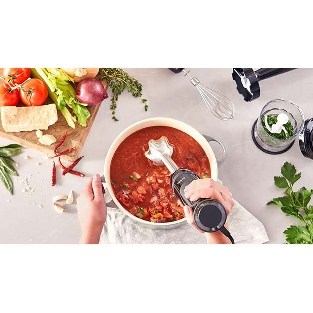 - تقنية باوربيل: تقنية المزج اليدوي حائزة على براءة اختراع أثبتت كفاءتها في نتائج أكثر تناسقاً، تقنية التحكم في رش السوائل: تمنع الرش - لإبقاء مطبخك نظيفًا.