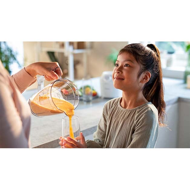 يتميز تصميمه المدروس بالراحة والمتانة، مع قاعدة شفط تمنع الاهتزاز أثناء الاستخدام. يمكنك أيضًا الاستفادة من تطبيق HomeID للوصول إلى أكثر من 200 وصفة لتحضير مشروبات صحية وأطباق لذيذة لعائلتك بسهولة. يجمع هذا الخلاط بين الأداء القوي، التصميم المريح، وسهولة التنظيف لتجربة طهي مثالية.