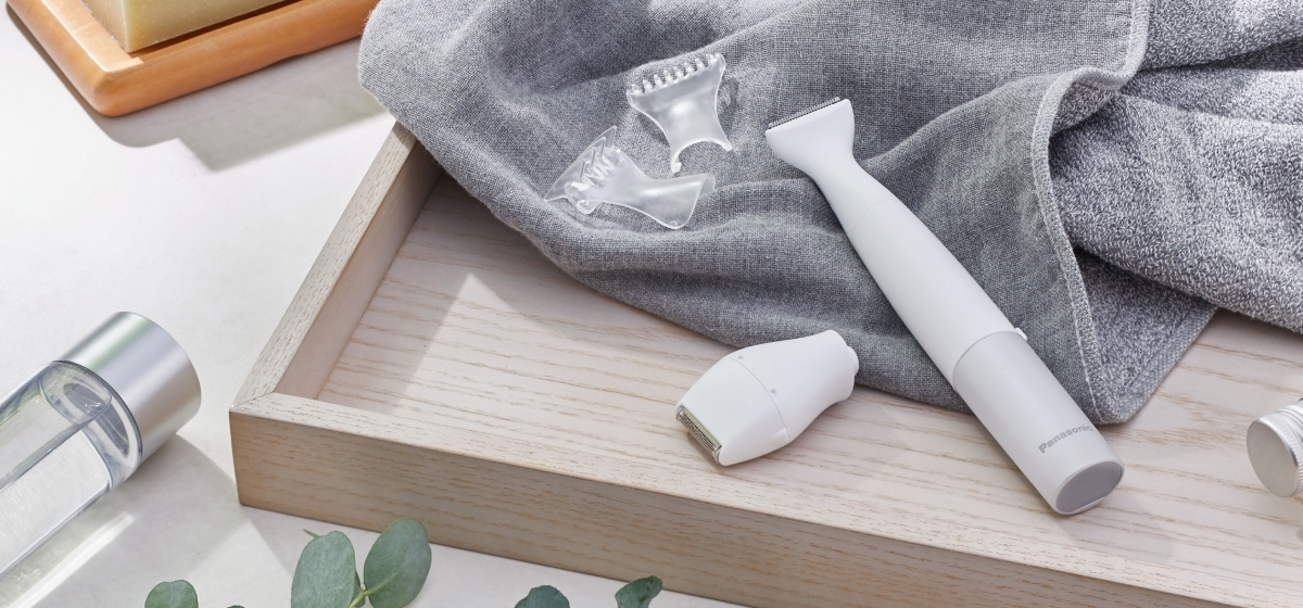 باناسونيك ماكينة لحلاقة وتشذيب منطقة البكيني للنساء مع 4 ملحقات للعناية اللطيفة بالمناطق الحساسة تصلح للحلاقة الرطبة والجافة تعمل بالبطارية