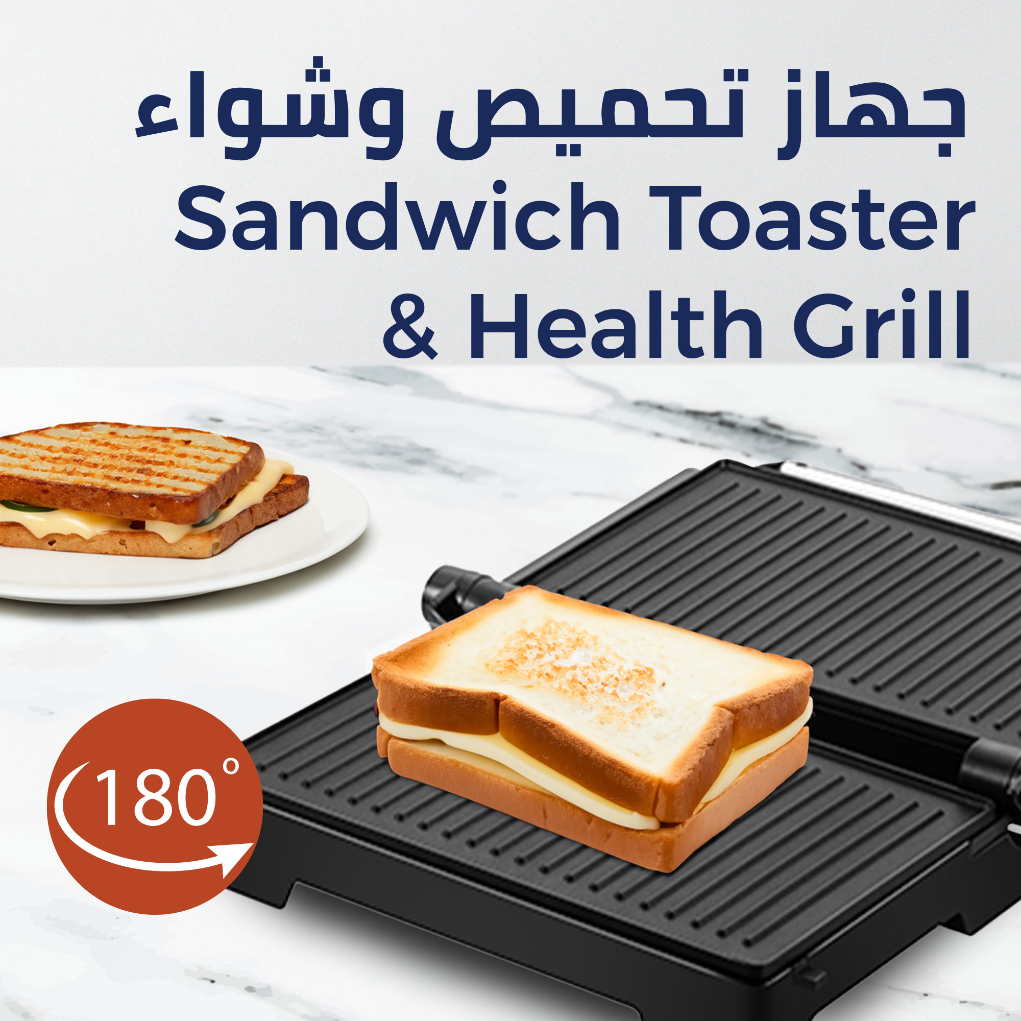 كيون صانعة ساندوتش 1000 واط - قابلة للفتح لدرجة 180