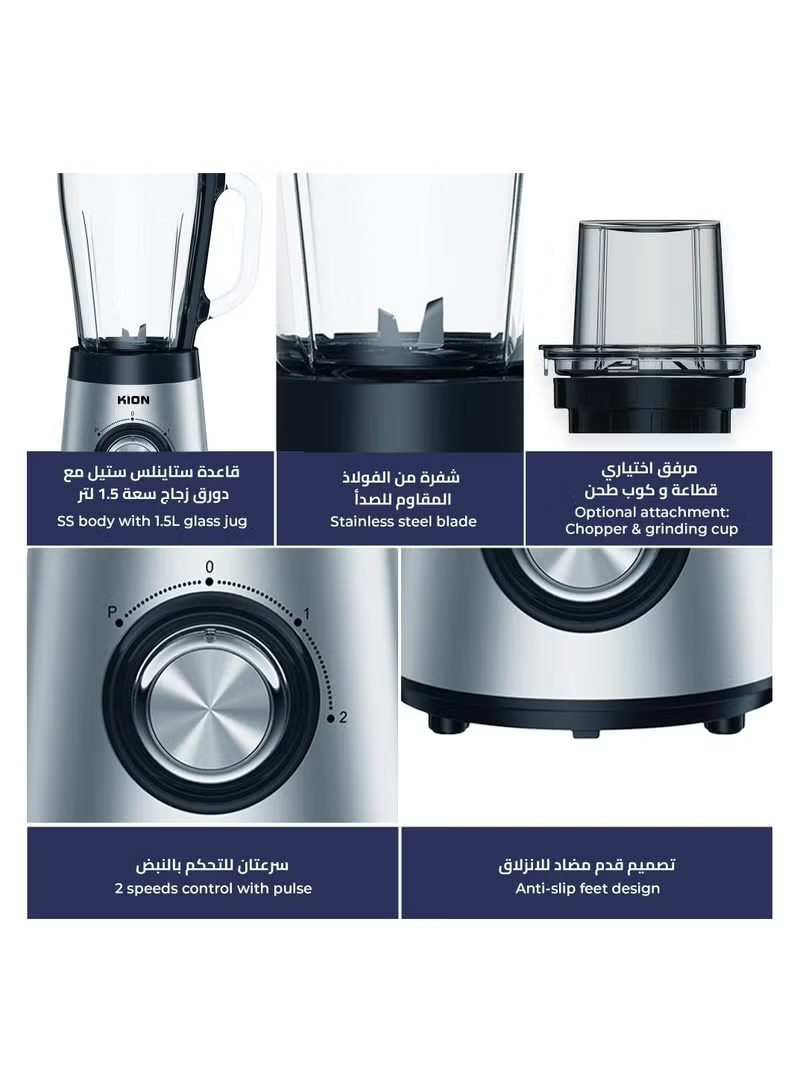 كيون خلاط 500 واط - 1.5 لتر ستيل سرعتين