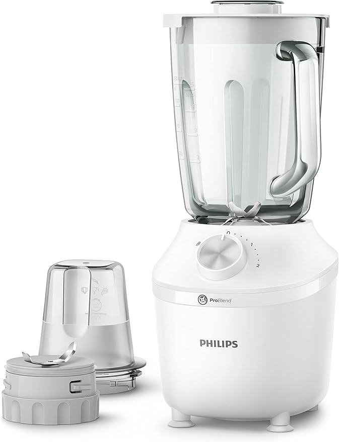 فيليبس خلاط HR2291/20 باور سلسلة 3000 600 واط وعاءان زجاجيان، أبيض