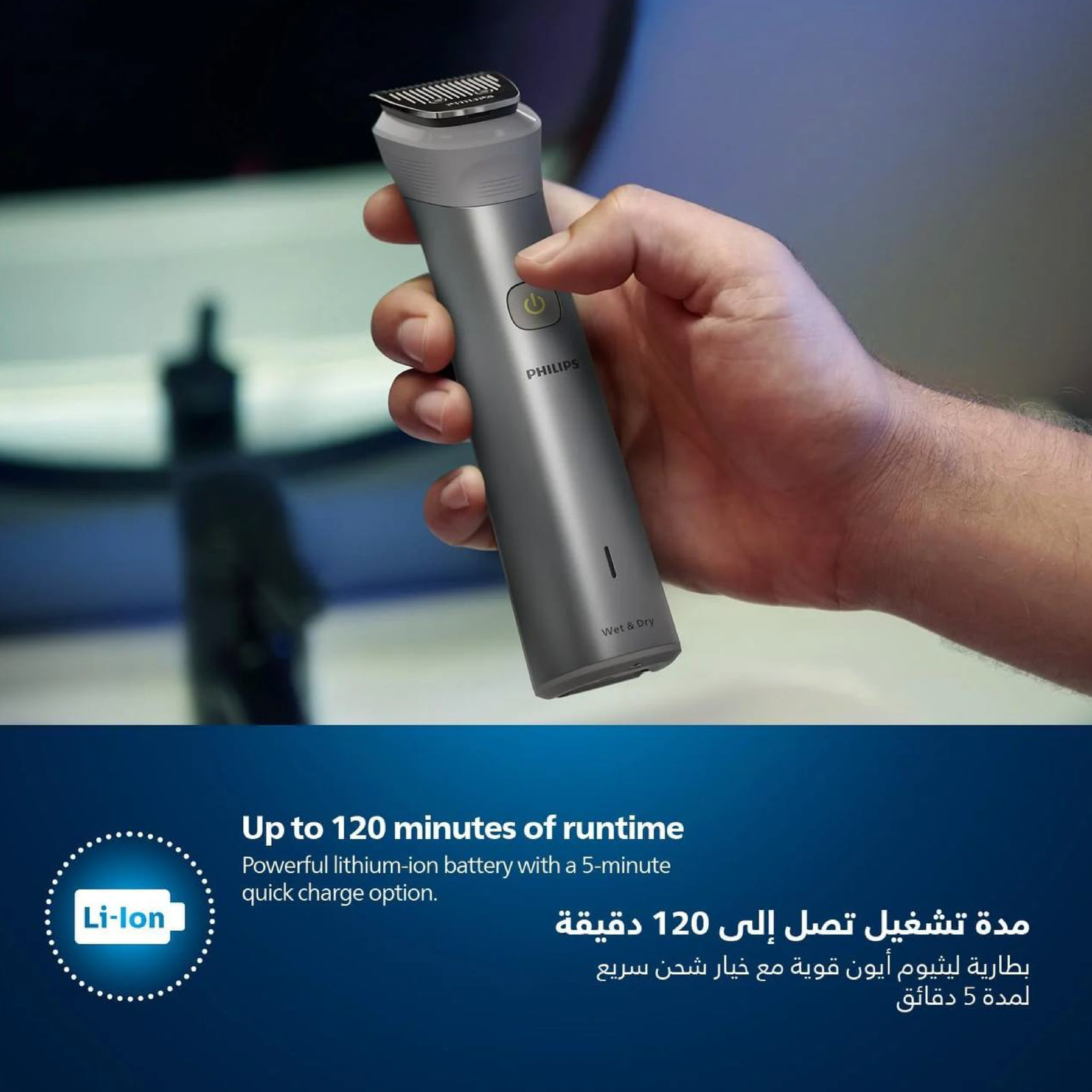 فيليبس ماكينة التشذيب متعددة الاستخدامات MG5930/15 من Philips | مجموعة عناية 11 في 1 لتشذيب الوجه والشعر والجسم | للأنف والأذن | 120 دقيقة من الاستخدام اللاسلكي، مقاومة للماء