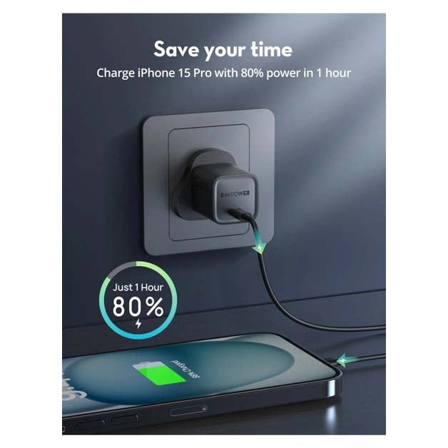شاحن جداري راف باور بمنفذ تايب سي بقوة 30 واط - أسود