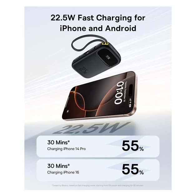 Baseus Power Bank 20000mAh 22.5W with 2 Cables, Black