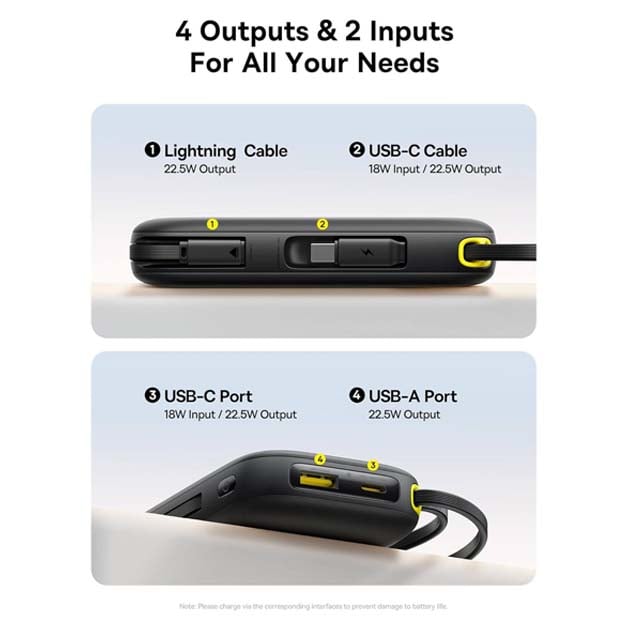- One Built-in Type-C Cable and One Lightning Cable