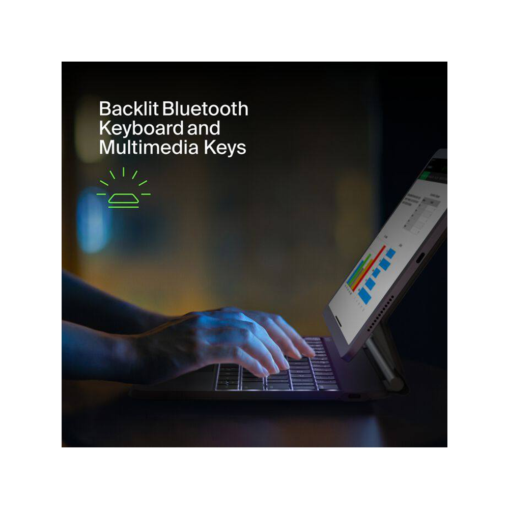 The backlit keys let you stay productive even in dark environments without guessing your keystrokes. Additionally, the auto wake feature allows instant access to your keyboard as soon as you open the case—no need to press any buttons.