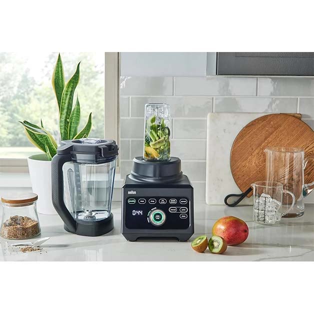- TRI-ACTION TECHNOLOGY: Blends all types of food. The triangular jug avoids blind spots and redirects ingredients faster to the mixing area.