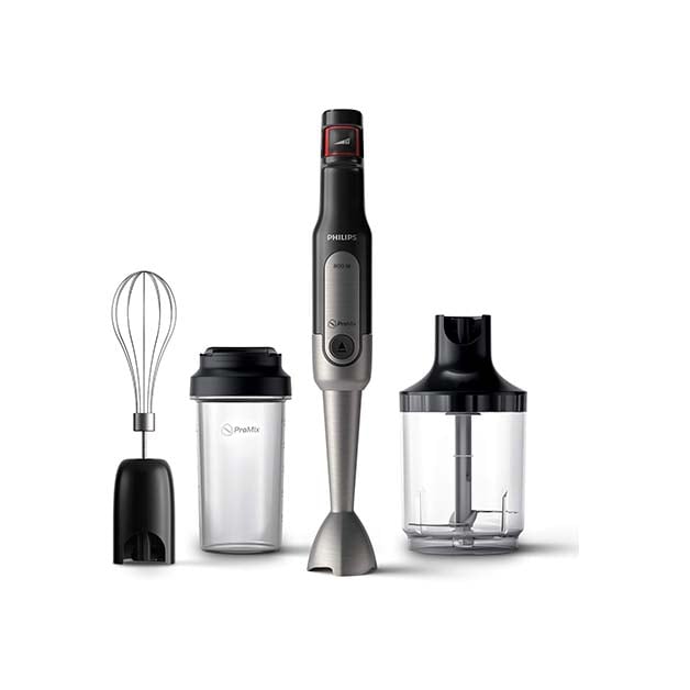 The Philips 800W Hand Blender is made of stainless steel and delivers powerful performance to quickly and easily prepare your favorite meals and drinks. The SpeedTouch system allows effortless control of power, with a turbo button for extra speed when needed. Its innovative ProMix technology ensures fast and consistent blending with a unique triangular design for optimal food flow.