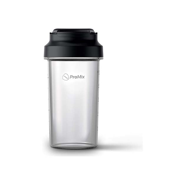The blender comes with an AntiSplash blade guard to prevent splattering, a Whisk attachment for whipping cream, making mayonnaise, and sauces, and an XL Chopper for processing tougher ingredients like meat and nuts. It also includes a Tumbler On the Go for safely blending healthy drinks while traveling, BPA-free and equipped with a leak-proof lock.