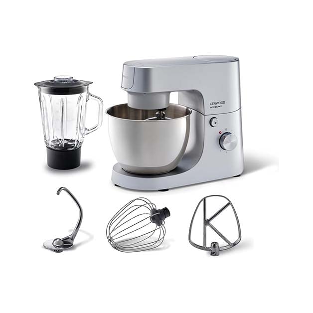 Kenwood OWKHH01.120SI HomeBake Stand Mixer, 1400W, 5L Capacity, with Three Kneading Attachments and Glass Blender