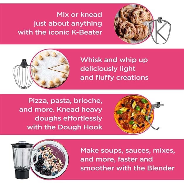 • Perfect Mixing Every Time: Kenwood’s planetary mixing action ensures thorough ingredient incorporation.