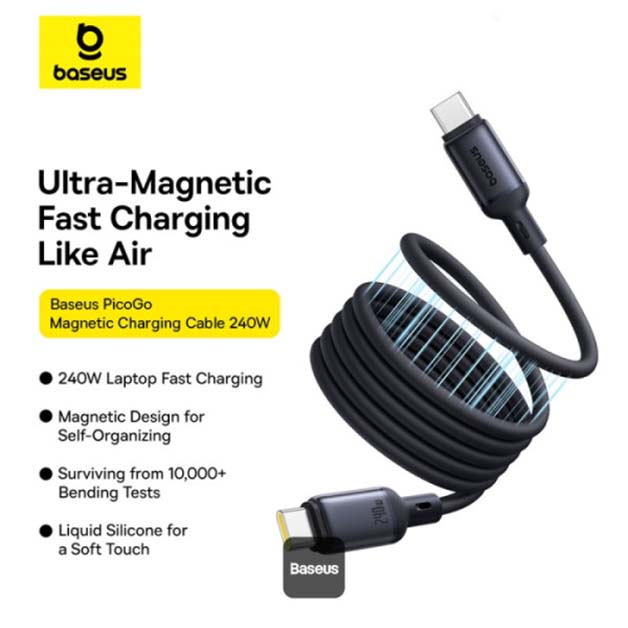 Baseus PicoGo Magnetic Fast Charging Cable, Liquid Silicone, Black