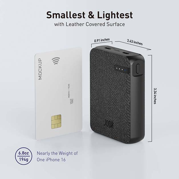 JODA Nano Portable Power Bank – 20W Fast Charging, 10000mAh, Dual USB-C Ports
