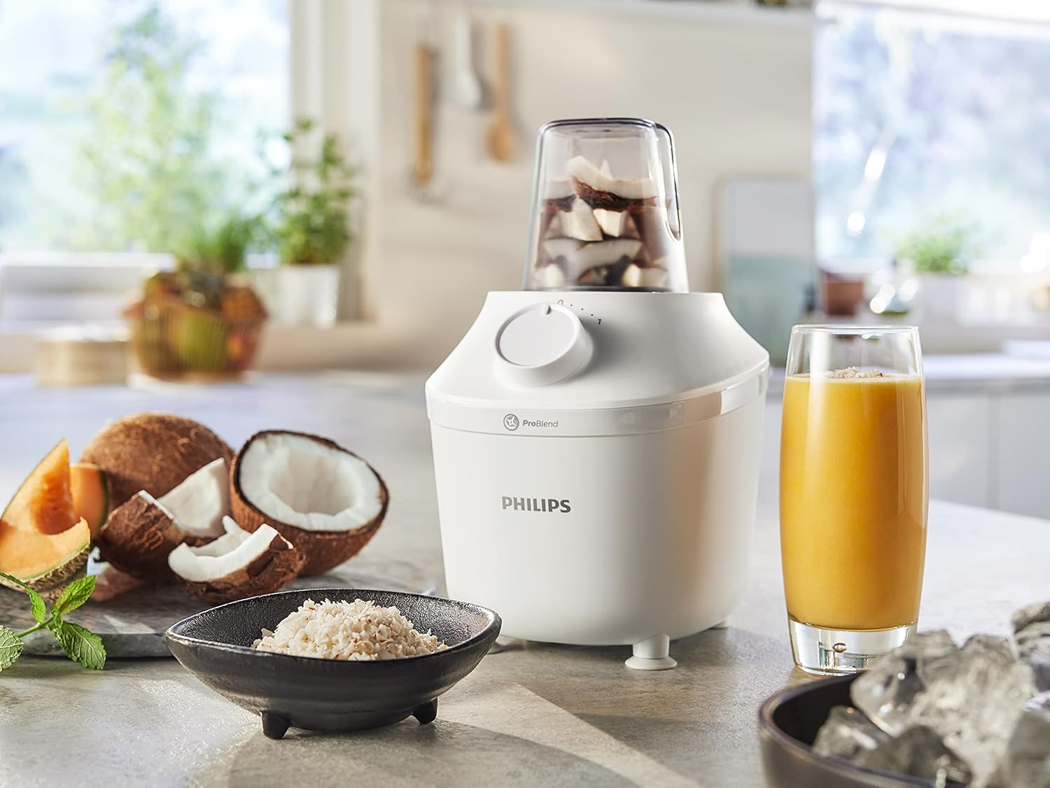 Philips Plastic Jar Blender 450W, 1.9L 1 Speed + Pulse Comes with a Mill + Chopper White