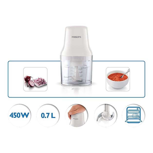 Philips HR1393/01 Chopper 450W, 0.7L Plastic Bowl, 2 Blades, White