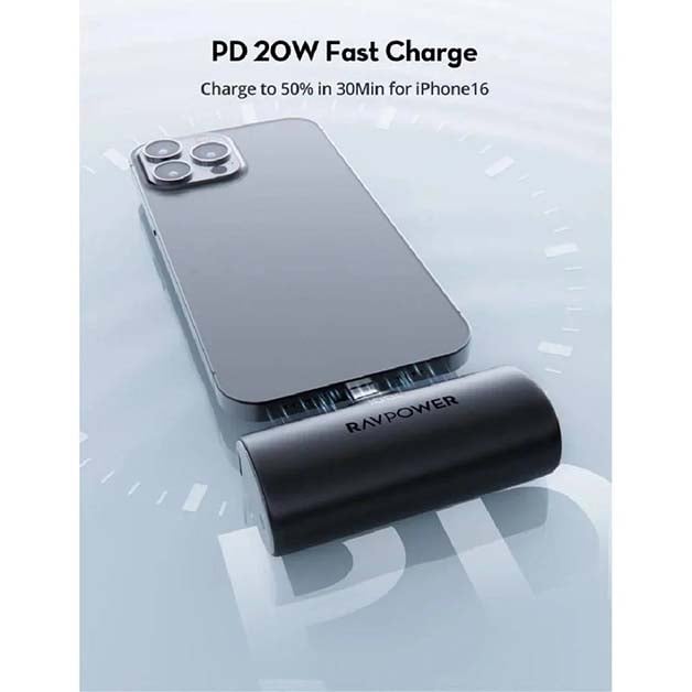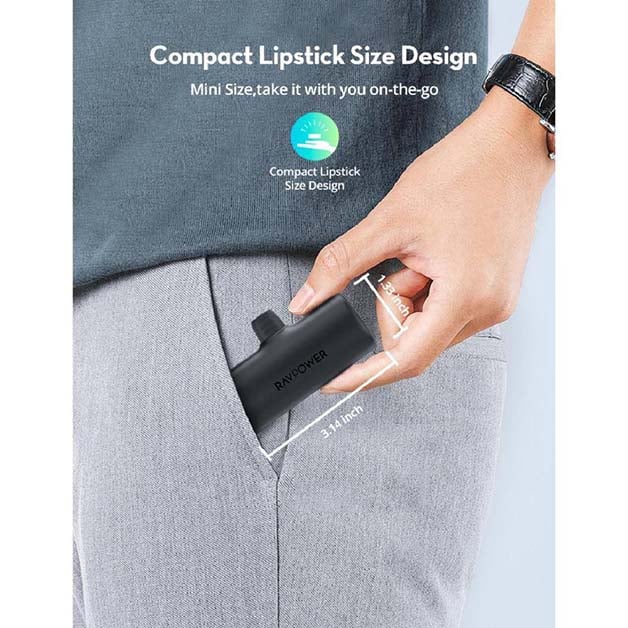 RAVPower Mini 5000mAh Power Bank with Built-in USB-C Charger and 20W Output (Includes USB-C to USB-C Cable)