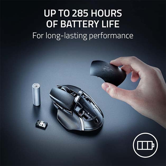- Up to 285 hours of battery life — with up to 535 hours of Bluetooth playback and 285 hours on Razer HyperSpeed Wireless, you can stay in the thick of the action with a mouse designed for extended gaming sessions. *May vary depending on usage conditions.