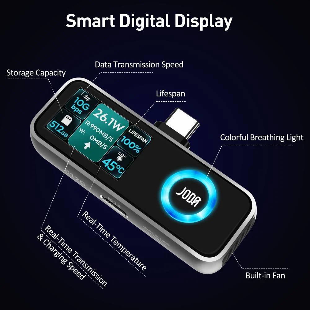 Joda 512GB Type-C Data Transfer Adapter with Digital Display - Black