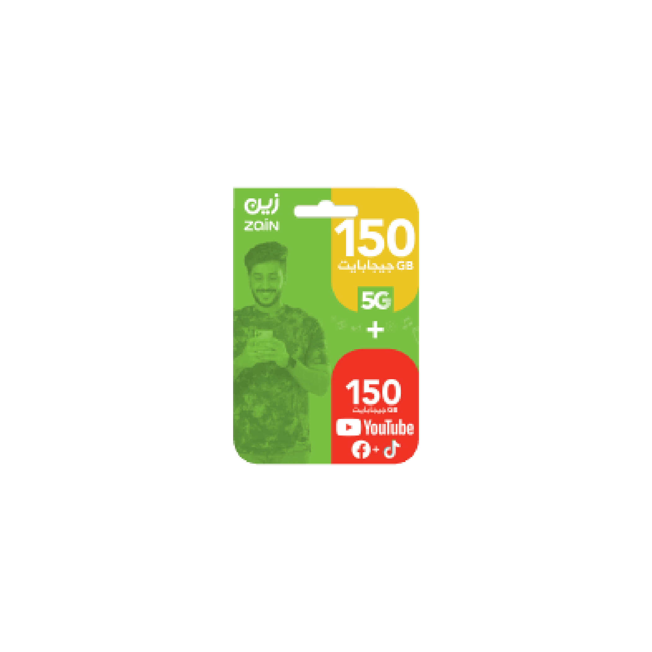 Zain internet recharge card: 150GB + 150GB for YouTube, Facebook, and TikTok for 3 months